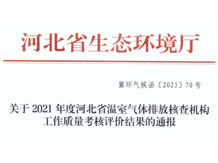2023年1月19日,河北省生態(tài)環(huán)境廳公布了《關(guān)于2021年度河北省溫室氣體排放核查機構(gòu)工作質(zhì)量考核評價結(jié)果的通報》(冀環(huán)氣候函〔2023〕70號),在2021年度河北省溫室氣體排放核查服務(wù)機構(gòu)的工作質(zhì)量考評中,北京科吉...