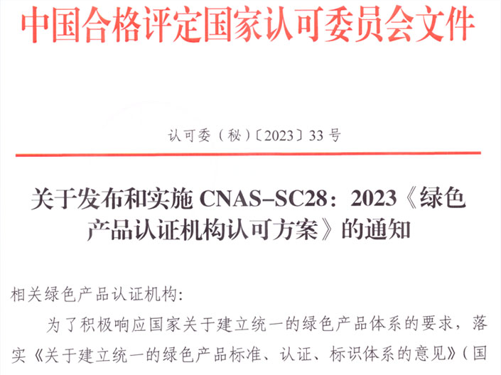 為發(fā)揮認(rèn)可技術(shù)在綠色產(chǎn)品認(rèn)證監(jiān)督機制中的技術(shù)約束和證實能力的作用,中國合格評定國家認(rèn)可委員會(CNAS)秘書處組織制定了CNAS-SC28:2023《綠色產(chǎn)品認(rèn)證機構(gòu)認(rèn)可方案》,該文件已于2023年4月1日正式發(fā)布,并將于2...