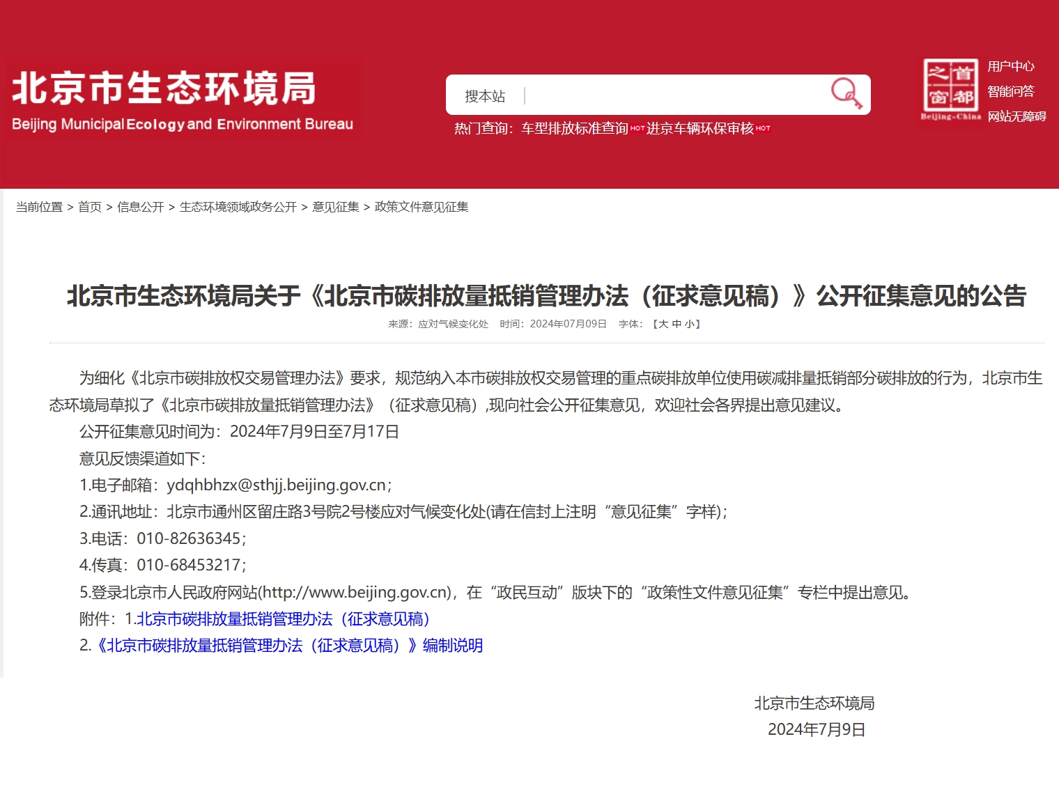 北京市生態(tài)環(huán)境局關(guān)于《北京市碳排放量抵銷(xiāo)管理辦法(征求意見(jiàn)稿)》公開(kāi)征集意見(jiàn)的公告來(lái)源:應(yīng)對(duì)氣候變化處 時(shí)間:2024年07月09日 為細(xì)化《北京市碳排放權(quán)交易管理辦法》要求,規(guī)范納入本市碳排放權(quán)交易管理的...