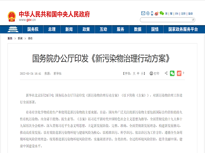 新華社北京5月24日電 國務(wù)院辦公廳日前印發(fā)《新污染物治理行動方案》(以下簡稱《方案》),對新污染物治理工作進(jìn)行全面部署。有毒有害化學(xué)物質(zhì)的生產(chǎn)和使用是新污染物的主要來源。目前,國內(nèi)外廣泛關(guān)注的新污染物主...