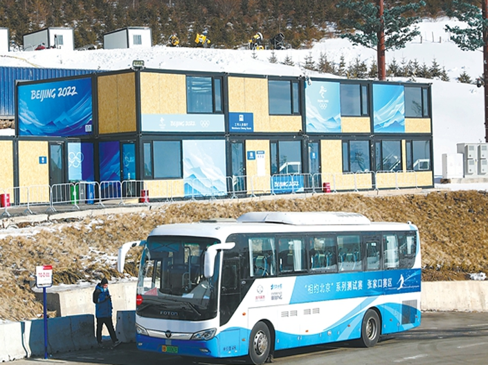 北京冬奧會賽時全部場館常規(guī)能源100%使用綠電,節(jié)能與清潔能源車輛在賽時車輛中占比超8成。圖為1月6日,在張家口市崇禮云頂滑雪公園,一名工作人員準(zhǔn)備乘坐氫燃料大巴出行。新華社記者 楊世堯 攝“賽時全部場館常規(guī)...